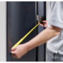 Measuring tape 3m, window measurement to be used for reading more precise, clip for attaching, double sided tape, packed individually in carton box, product made of metal, ABS and TPR