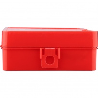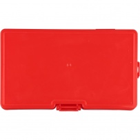 First aid set, clip closing, red case with white cross, sponges (2 pcs.), bandages (5 pcs.), alcohol pads (4 pcs.), scissors, bandage roll (450 cm), tape (450 cm), product made from PE, PP and polyester